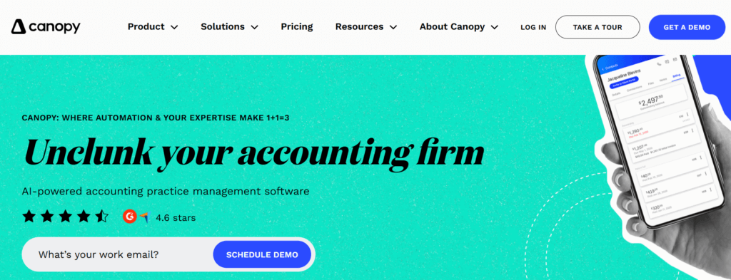 👉 Canopy is the comprehensive, venture-backed practice management platform designed for US accounting and tax firms that need vast tax resolution capabilities. With its direct IRS transcript integration, modular feature set covering client management, document storage, workflow automation, and time and billing, it serves firms looking for an all-in-one solution with enterprise-grade compliance.