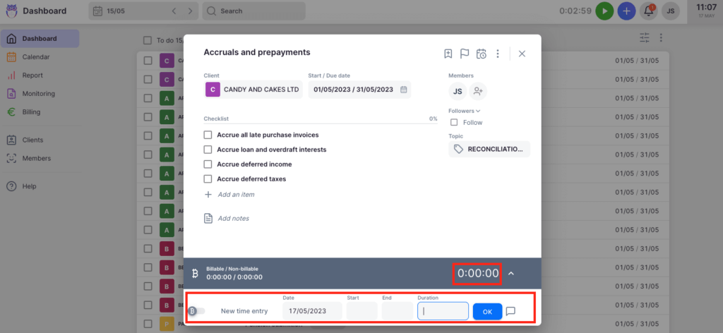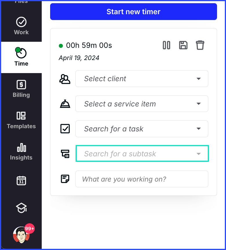 When clients make requests through the portal, notifications appear on the accountant’s dashboard, and they can immediately start tracking time or communicating within that same task.