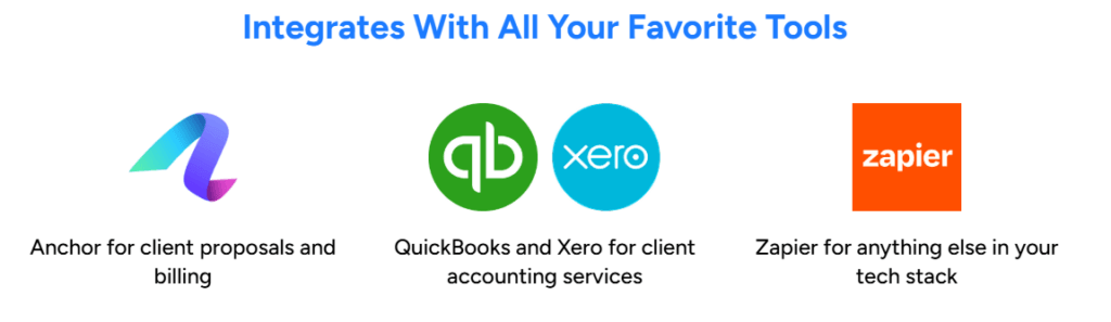 Client Hub has strong connections with accounting software. The QuickBooks Online integration is a standout, allowing firms to resolve uncategorized transactions directly within Client Hub and sync the categorized data back automatically. Xero integration is also available. Beyond accounting software, Client Hub connects with email (Gmail, Outlook), Anchor for billing, and Zapier for broader connectivity.