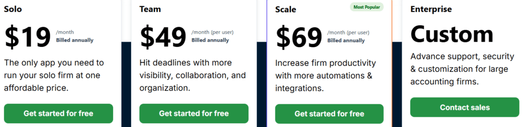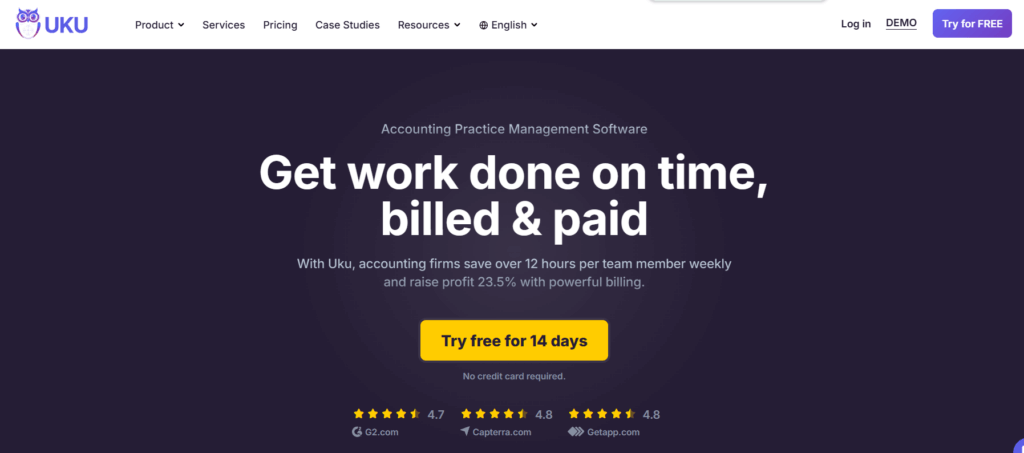 👉 Uku combines powerful workflow automation with sophisticated time tracking and automated billing in a system your team will actually enjoy using. What sets Uku apart is its automated billing system that reduces invoice preparation from days to approximately 30 minutes, plus an integrated client portal where clients and accountants work on the same task with all communication, documents, and time tracking in one place. The platform’s modular approach lets firms start working on day one with just the features they need, then scale up gradually with no substantial upfront configuration required. With support for 12 languages and multi-currency billing in €, $, and £, Uku serves 1000+ clients globally. A free Solo plan makes it accessible for freelancers, while flexible monthly pricing means teams can test the system without annual commitments.