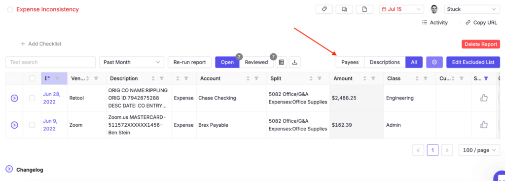 While Financial Cents excels at workflow organization, Double identifies what needs correction before close. The Expense Inconsistency Detection analyzes patterns to flag miscoding that would require manual review or be discovered months later. Financial Cents tracks task completion and offers ReCats for managing uncategorized transactions, but doesn’t provide the same depth of pattern-analysis reports.