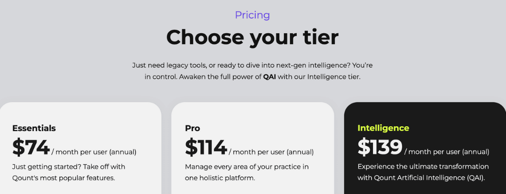 - Intelligence: $139/user/month (annual) – Full QAI suite