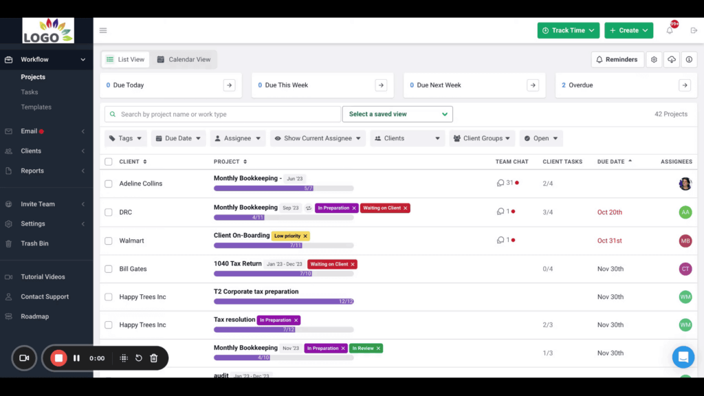 Users can browse the template library and download relevant workflows, then customize them to match their firm’s specific processes. Once templates are set up, they’re applied to individual clients to create customized work plans. The system then automatically generates tasks based on recurrence settings, streamlining recurring work.