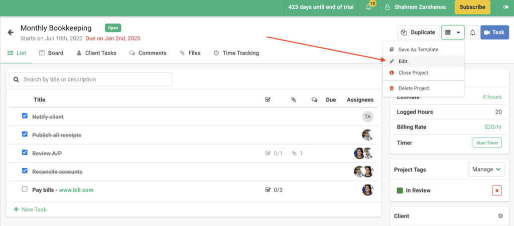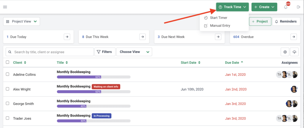 Clients and accountants work on the same item with all communication, actions, documents, logs, and time tracking in one place. When clients make requests through the portal, notifications appear on the accountant’s dashboard, and they can immediately start tracking time within that same task.