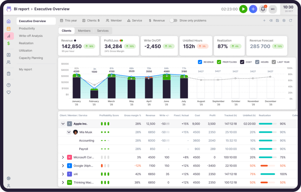 If you can’t clearly see where time is going, you can’t confidently decide which clients need a scope reset, which need a different fee model, or which simply don’t fit anymore.