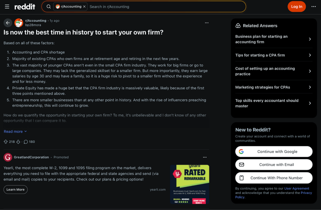 - Lurk in LinkedIn groups and Reddit threads like r/smallbusiness (see below) to see which questions come up over and over.