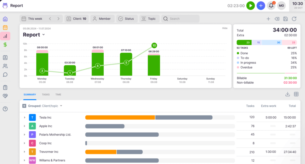 Uku excels for firms that want everything in one place: task management, time tracking, automated billing, and secure client collaboration without managing multiple software subscriptions. Customer feedback indicates firms see ~20% more profit by discovering outdated agreements where actual work hours exceeded contracted amounts.