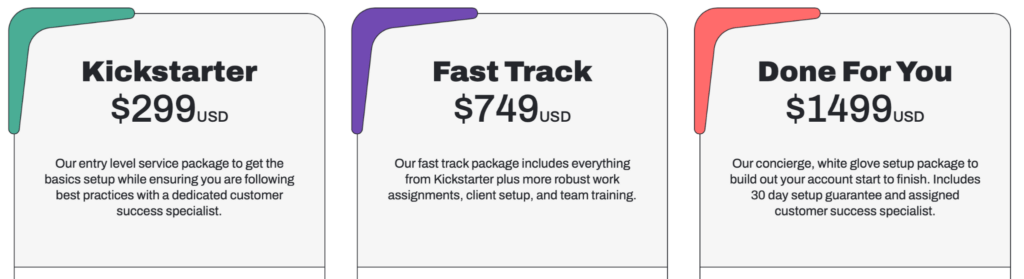 | Extras | Custom integrations, assisted client import, team workshop, early feature access |